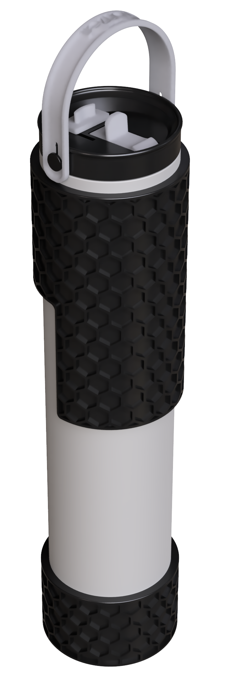 This bottle was designed as part of a product design class. The bottle features two thermally isolated chambers which allows the user to maintain two liquids at a distinct temperatures, such as ice water and coffee.