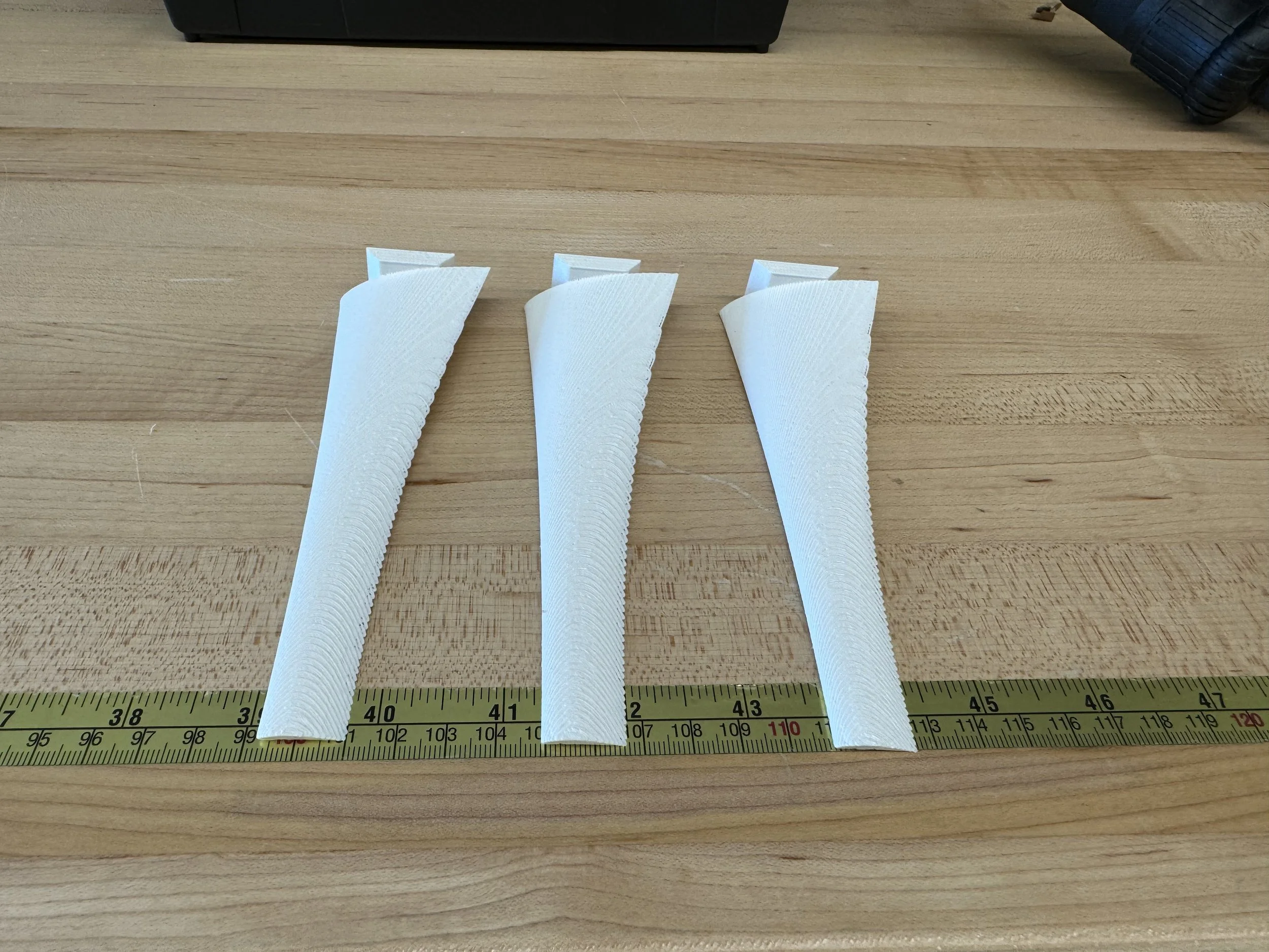These turbine blade were made as part of a design challenge. The specifications of the wind tunnel were set, and the task was to create the most optimally efficient blade over a range of wind speeds.
