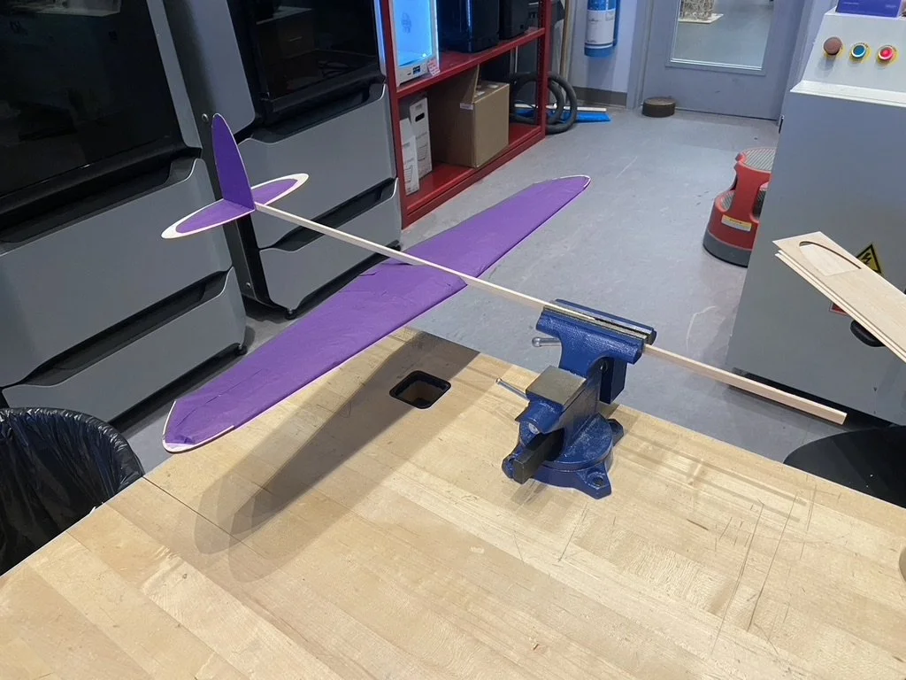 This glider was made as part of an aeronautics course. The goal was to maximize the airtime of a flight spanning 15m or less. The glider ranked 2nd out of 22 teams.